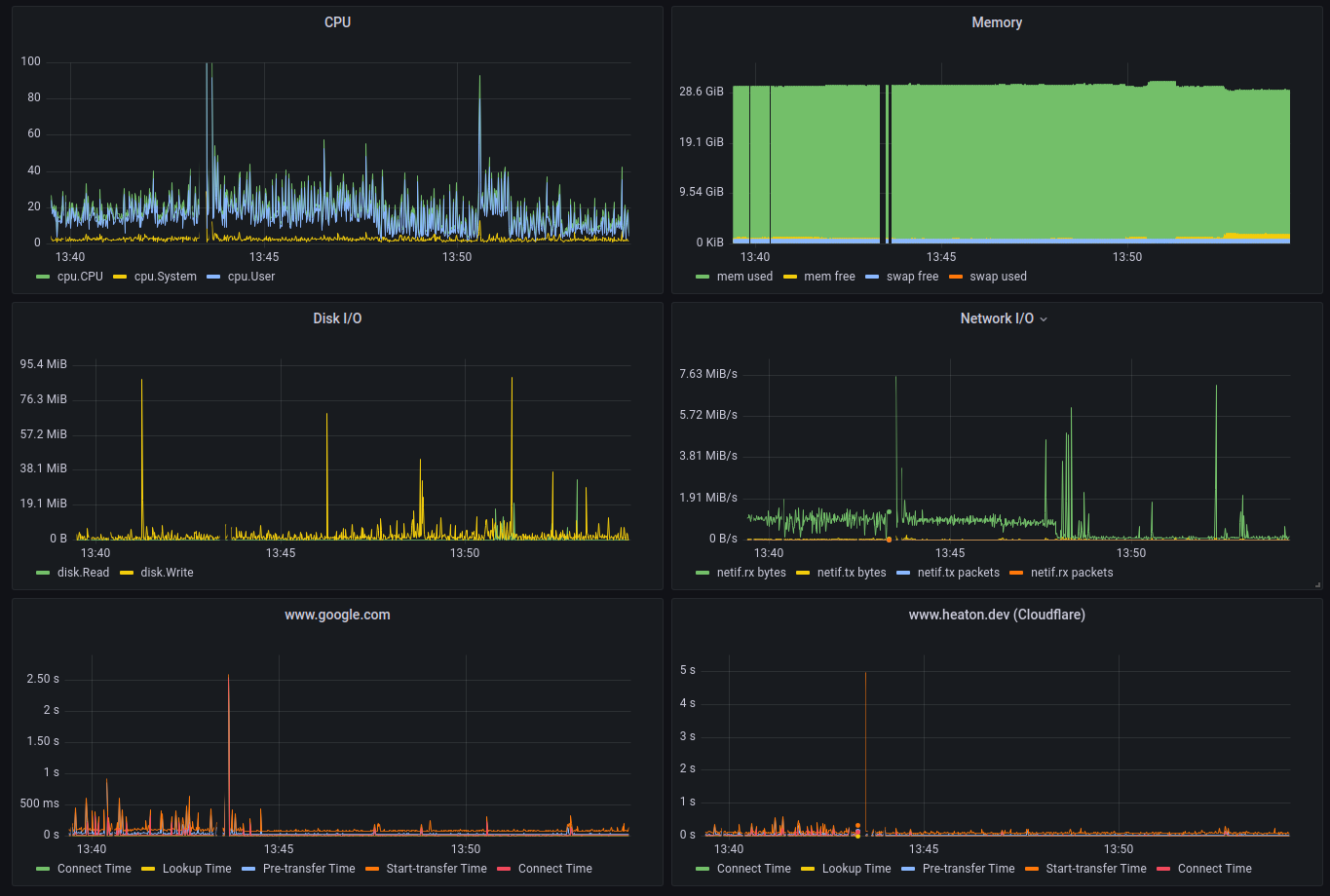 I want to keep an eye on my Internet service provider after a series of prolonged outages, to that end I setup a Grafana dashboard to monitor my connectivity to various online services.